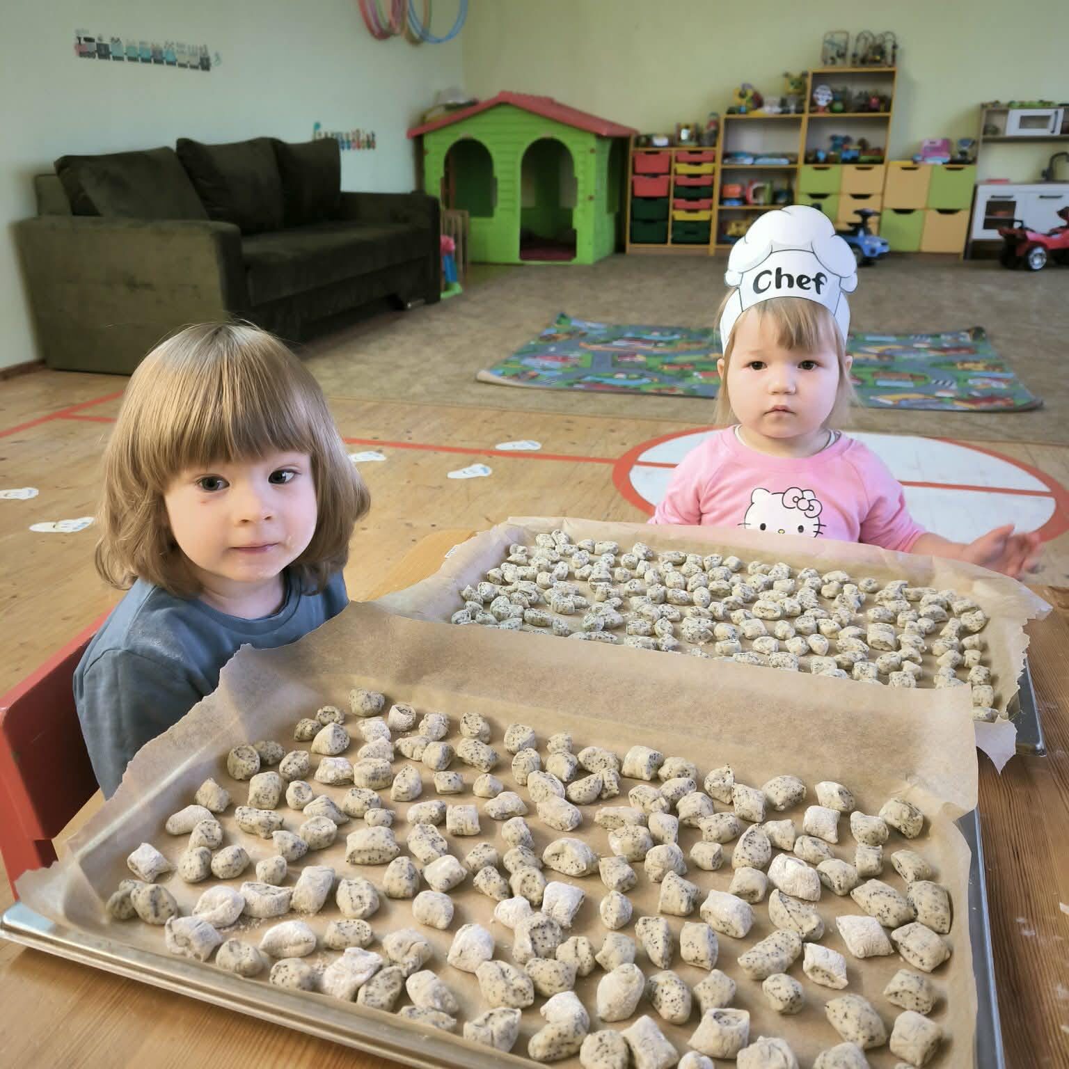 Darželio vaikai kartu su pedagogais kepė tradicinius kūčiukus bei gamino kalėdines atvirutes su šventiniais palinkėjimais. Šios veiklos tapo gražia kalėdinio laikotarpio patirtimi, ugdančia bendrystę ir dalijimosi džiaugsmą.