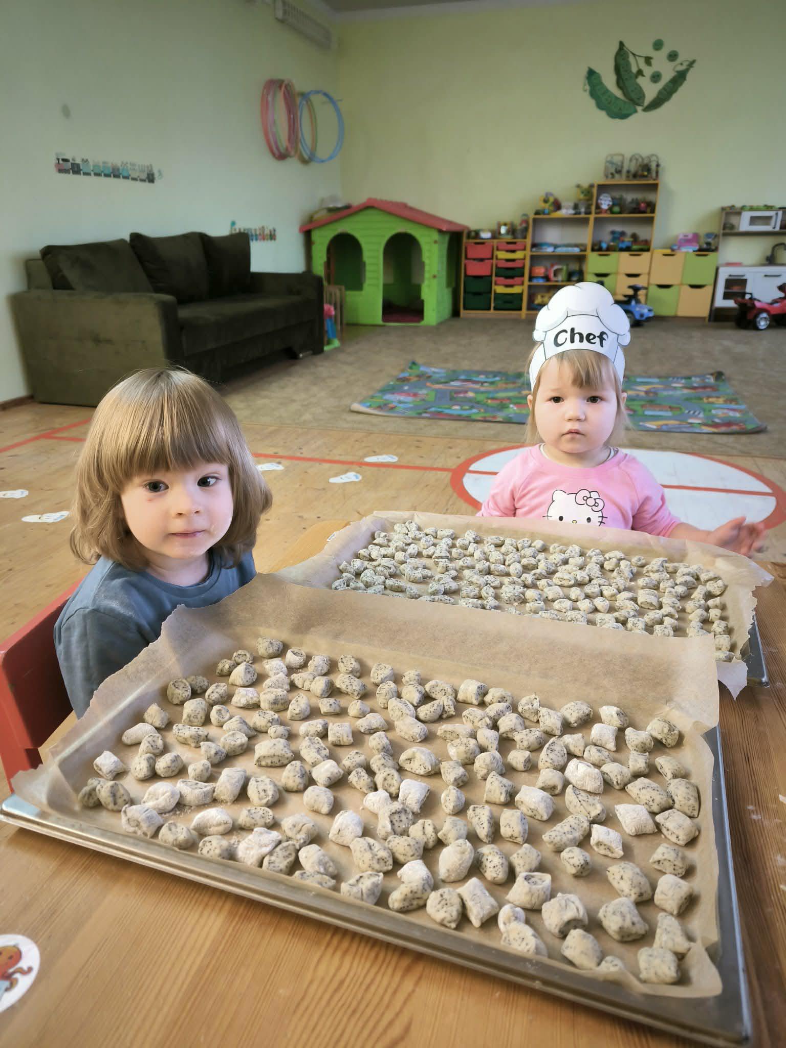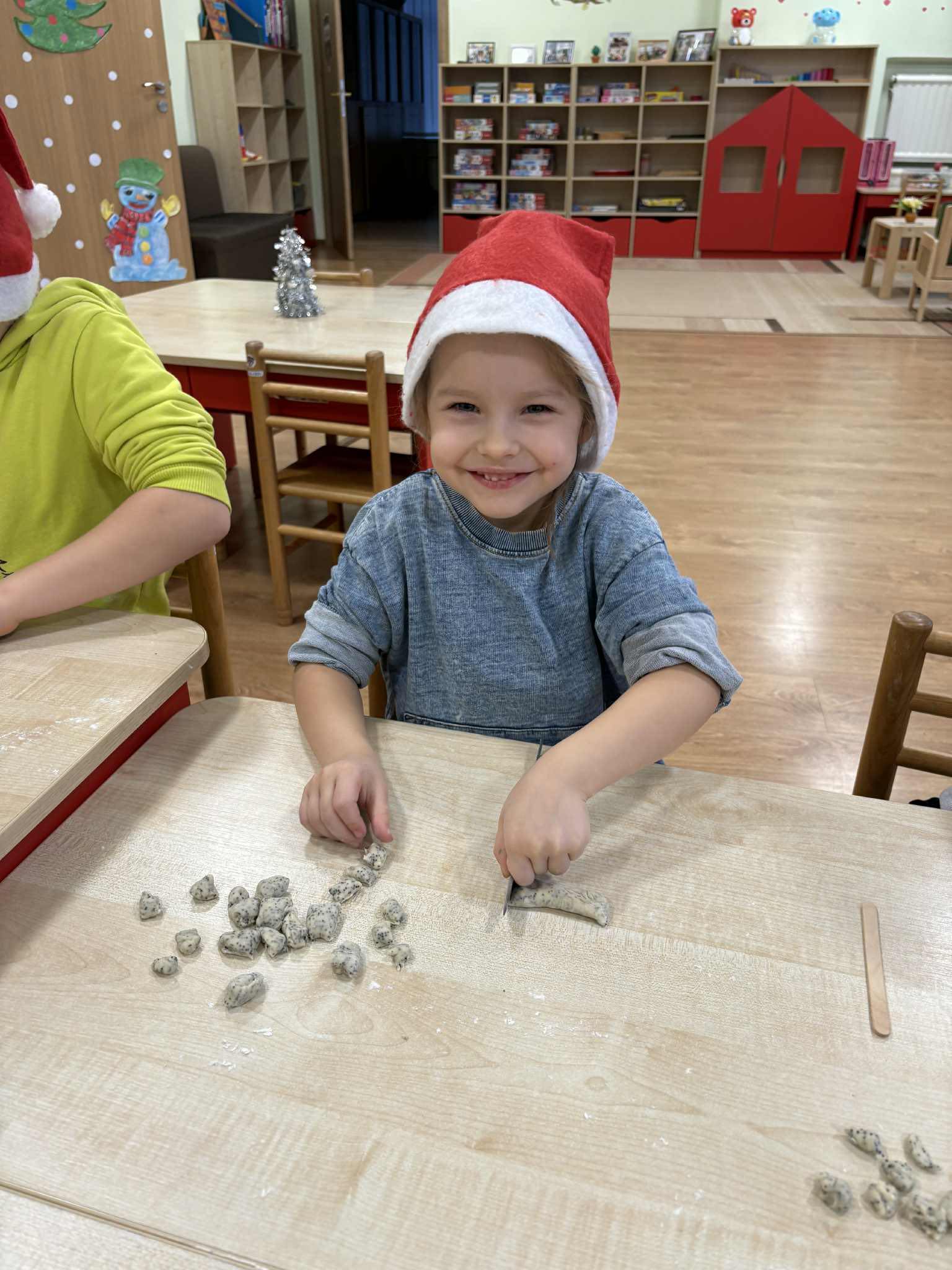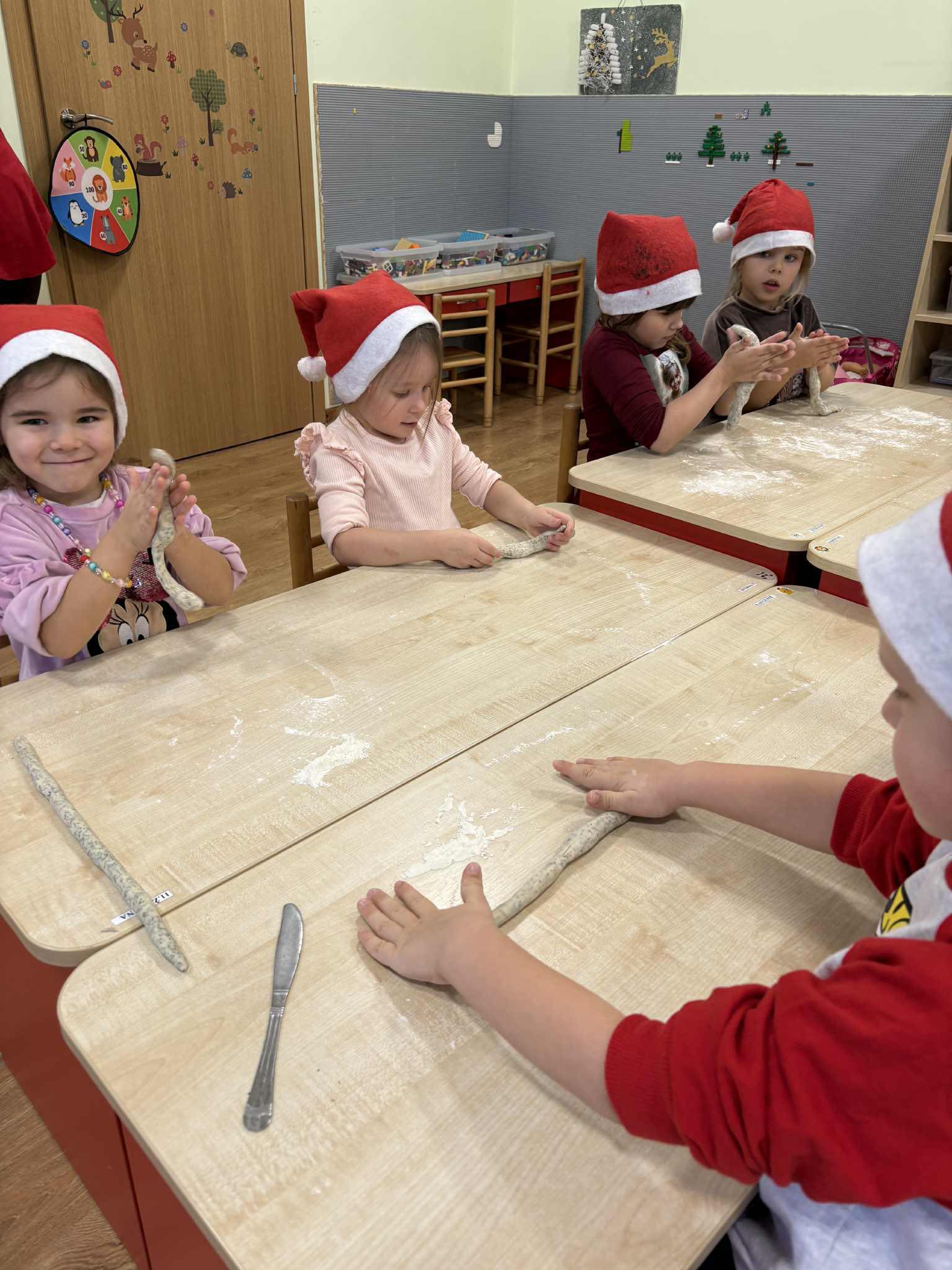Darželio vaikai kartu su pedagogais kepė tradicinius kūčiukus bei gamino kalėdines atvirutes su šventiniais palinkėjimais. Šios veiklos tapo gražia kalėdinio laikotarpio patirtimi, ugdančia bendrystę ir dalijimosi džiaugsmą.
