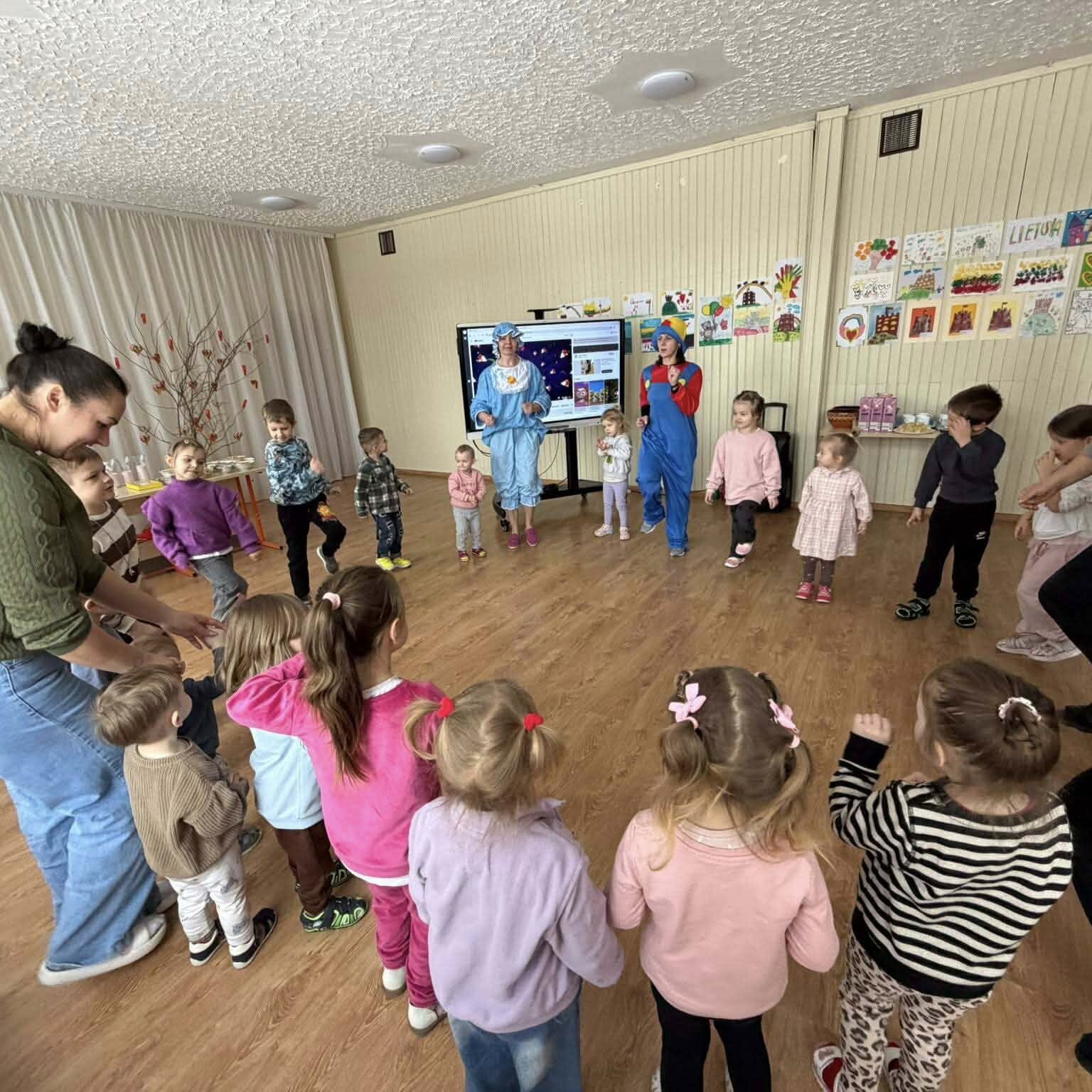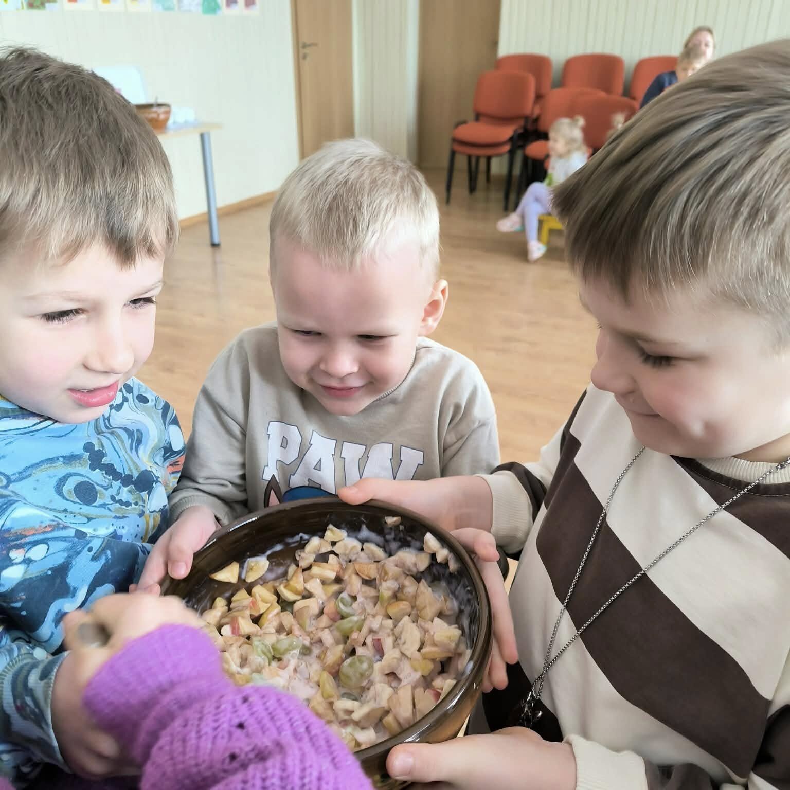Šį smagų rytą veiklą vaikams organizavo mokytojos Irina ir Gitana. Kartu su vaikais kalbėjomės apie sveiką mitybą ir vitaminus – kodėl jie svarbūs nuo pat mažens ir iš kokių produktų jų gauname. Vaikai sužinojo, kad mūsų organizmui labai naudinga valgyti įvairų, spalvingą maistą.