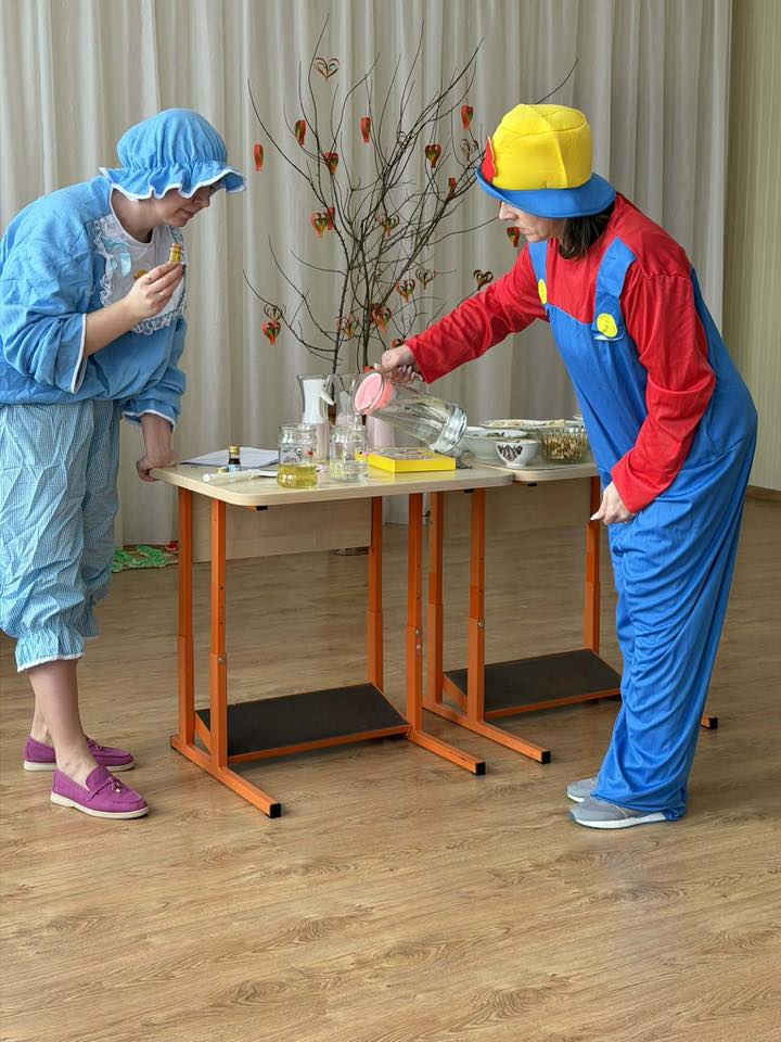 Į veiklą įtraukėme ir STEAM elementą – atlikome smagų eksperimentą, kurio metu tyrinėjome, kurie vitaminai tirpsta vandenyje, o kurie riebaluose. Vaikai stebėjo, spėliojo ir patys darė išvadas.