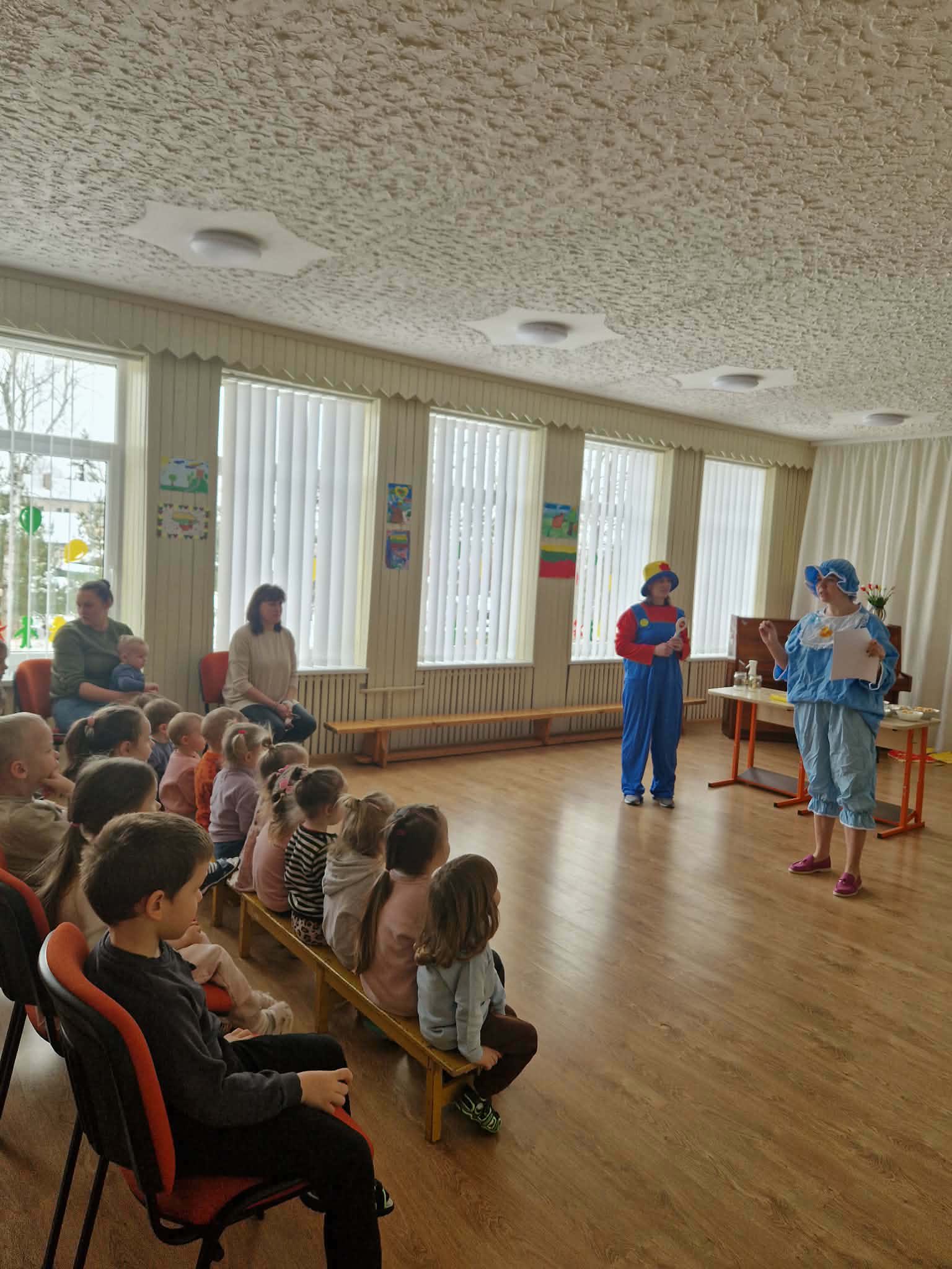 Šį smagų rytą veiklą vaikams organizavo mokytojos Irina ir Gitana. Kartu su vaikais kalbėjomės apie sveiką mitybą ir vitaminus – kodėl jie svarbūs nuo pat mažens ir iš kokių produktų jų gauname. Vaikai sužinojo, kad mūsų organizmui labai naudinga valgyti įvairų, spalvingą maistą.